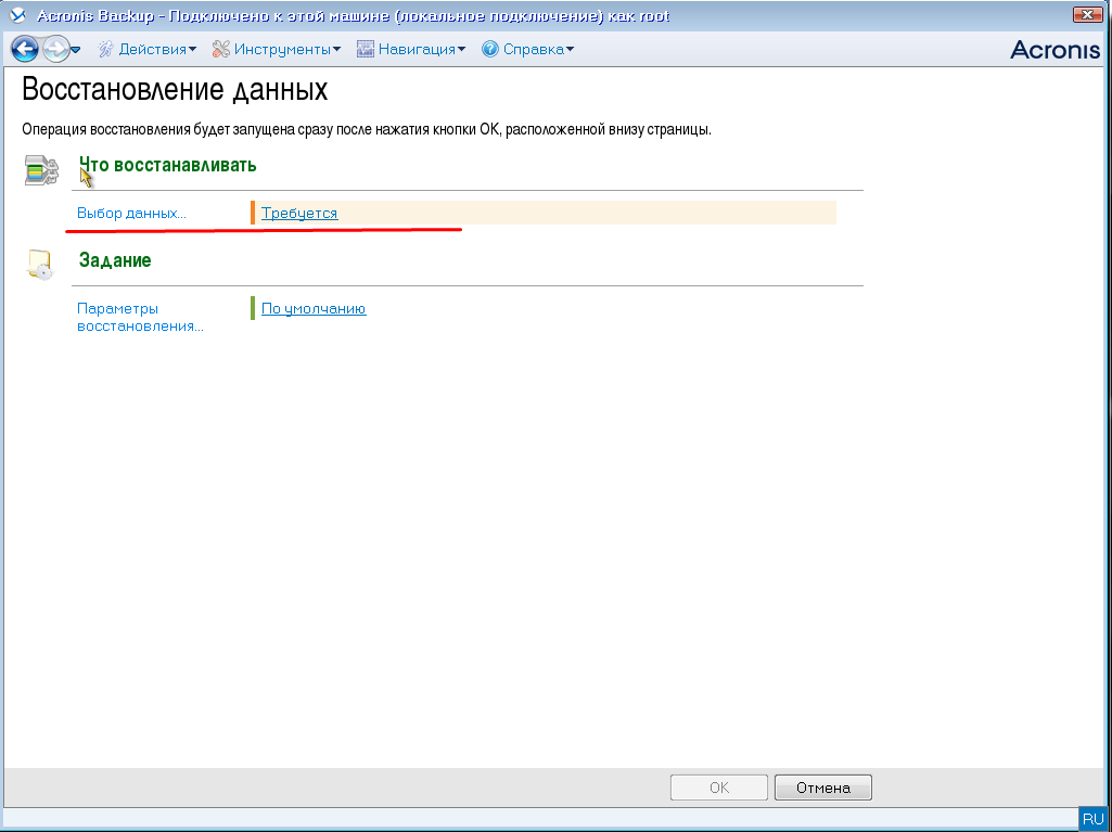 выполнить восстановление данных из Acronis Cloud; (стр. 150)