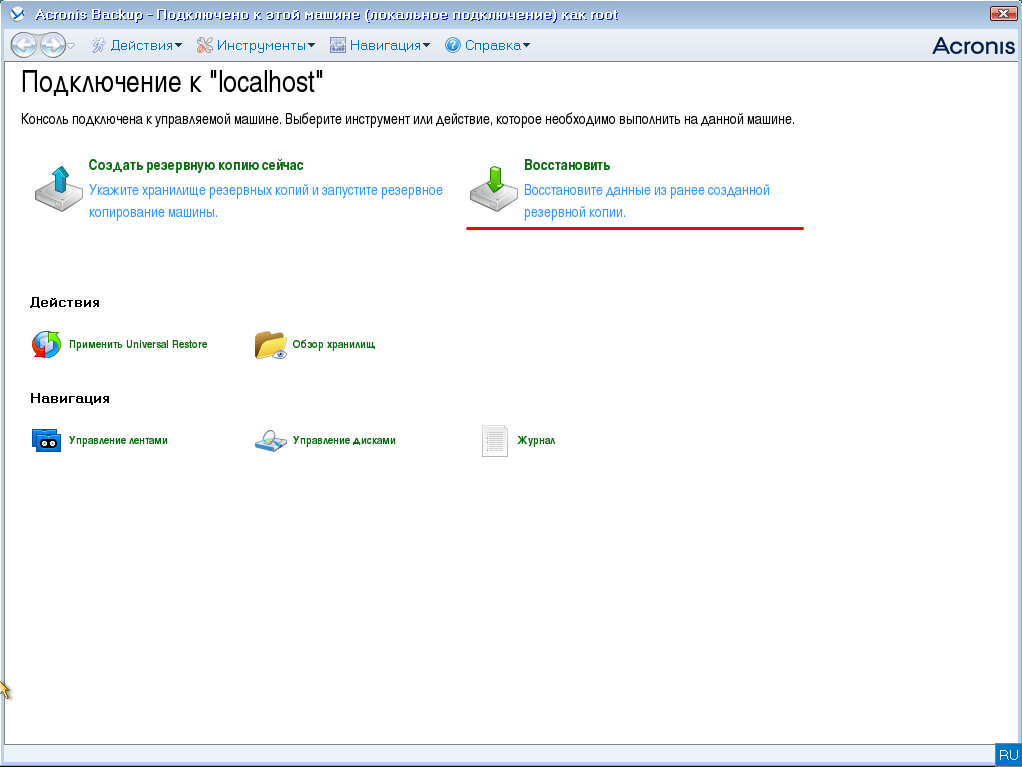 Universal Restore – позволяет восстановить резервную копию операционной системы на другой компьютер. Это полезно если вы купили новый компьютер или существенно обновили старый. В таком случае восстановить на него систему обычным способом может не получиться, Windows просто не будет загружаться.