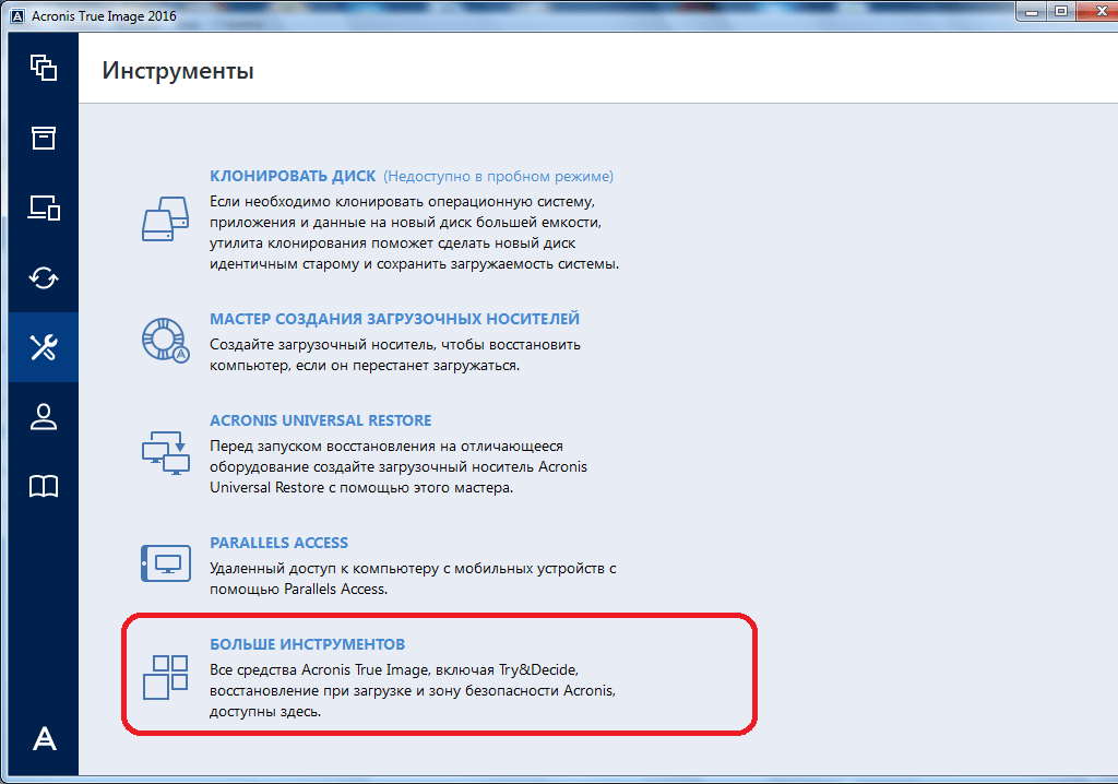 Acronis True Image имеет ряд дополнительных возможностей, которые я кратко опишу, но подробно в этой статье мы их рассматривать не будем.
