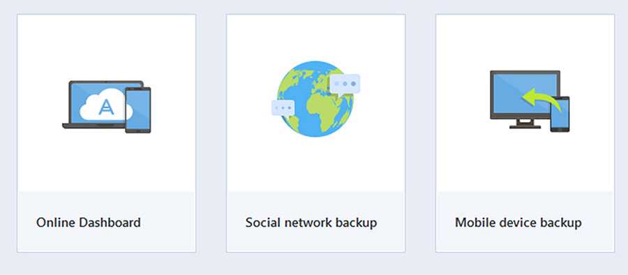 For instance, clicking the dashboard icon displays just three simple icons for online dashboard, social network, and mobile device backup. The online dashboard lets you manage backups of all your devices and accounts, and you can even select individual files to recover. We particularly like the search feature that lets you locate the file you need quickly. There’s just one drawback – your search term will have to match a portion of the file name exactly, so things like underscores and dashes could get in the way of locating the right file.