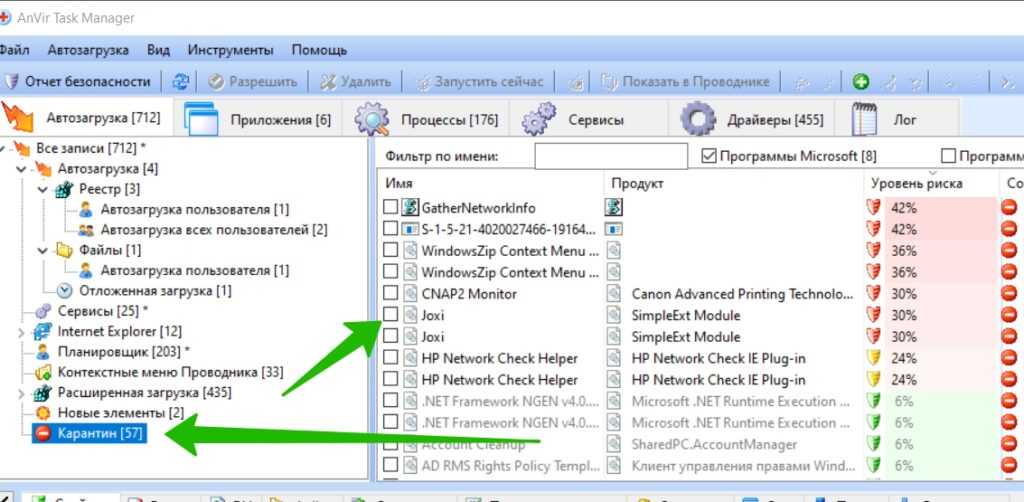 Я нашёл странный процесс и хочу его отключить, как сделать? Левой кнопкой мыши снимаете галочку с процесса и он будет помещён в карантин. Если нужно вернуть процесс в обратно в разрешённые, откройте слева раздел «Карантин» и найдите отключенные задачи из приложений.