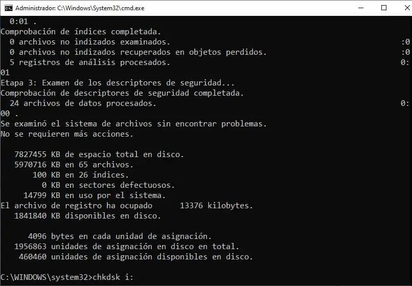 Команда CHKDSK имеет несколько функций, та, которую мы показали вам ранее, говорит конкретно о синтаксическом анализе, но это не единственное, что может делать CHKDSK . В связи с этим мы собираемся показать вам, как вы можете наблюдать за всеми возможными действиями с инструментом.