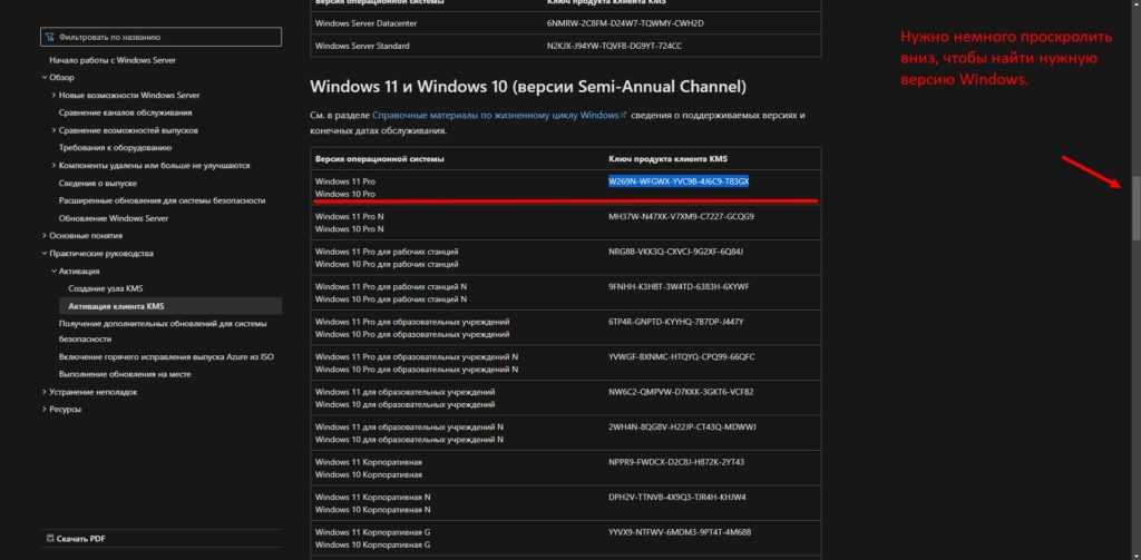 Необходимо скролить страницу вниз, чтобы найти подходящую версию операционной системы.
