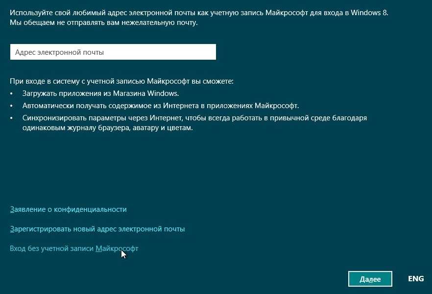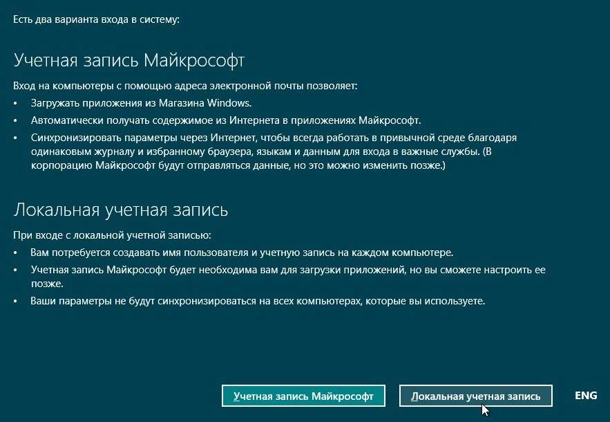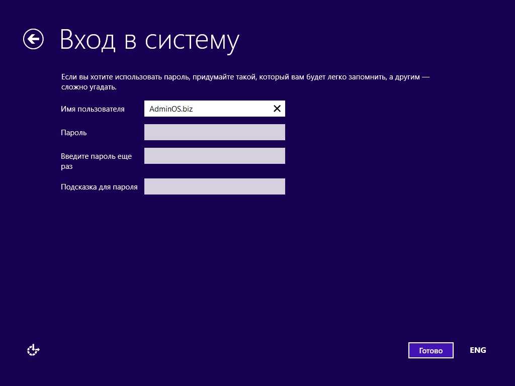 Наконец, настройки завершены и теперь появится запрос на ввод данных учётной записи. Если в данный момент вы подключены к интернету, то вы сможете создать учётную запись Microsoft, при этом можно использовать уже существующую. Если не подключены, то вам будет предложено создать локальную учётную запись. Подробнее об учётных записях Windows 8.1 читайте здесь.