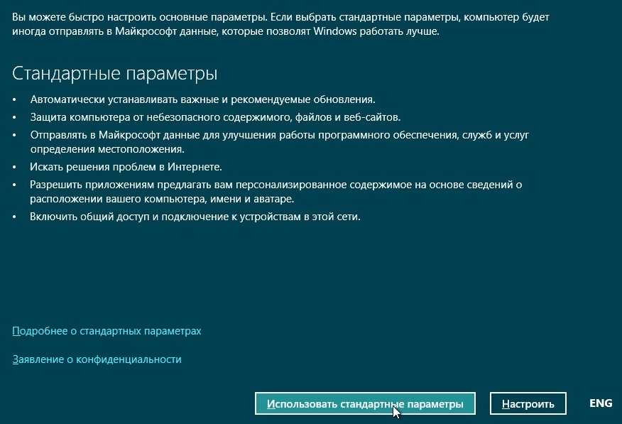 Затем нужно выбрать, будете вы использовать компьютер со стандартными настройками по умолчанию (рекомендую для новичков) или хотите произвести свои настройки. Если выбрали второй вариант на данном этапе установки Windows 8.1, то нажмите кнопку «Настроить».
