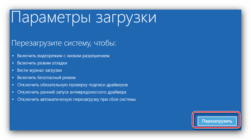 Виндовс 10, как и предыдущие редакции ОС от Майкрософт, по умолчанию перезапускается, если в процессе её работы произошел сбой. Данная возможность не всегда полезна – например, во время тестирования ПО либо какого-то из новых устройств. Деактивировать автоматический перезапуск можно посредством специального режима — для его использования нажмите на клавишу F9.