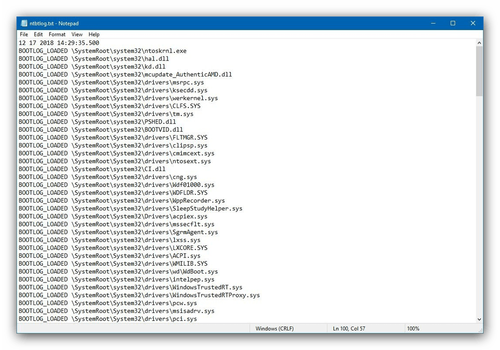 Для диагностики неполадок может быть полезен список установленных драйверов. Он находится в файле ntbtlog.txt, который автоматически создается при выборе данной функции.