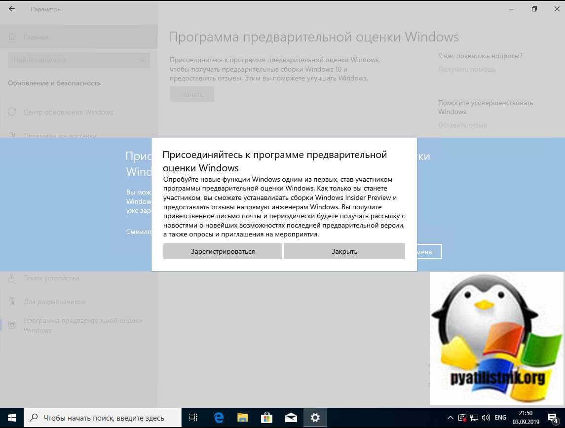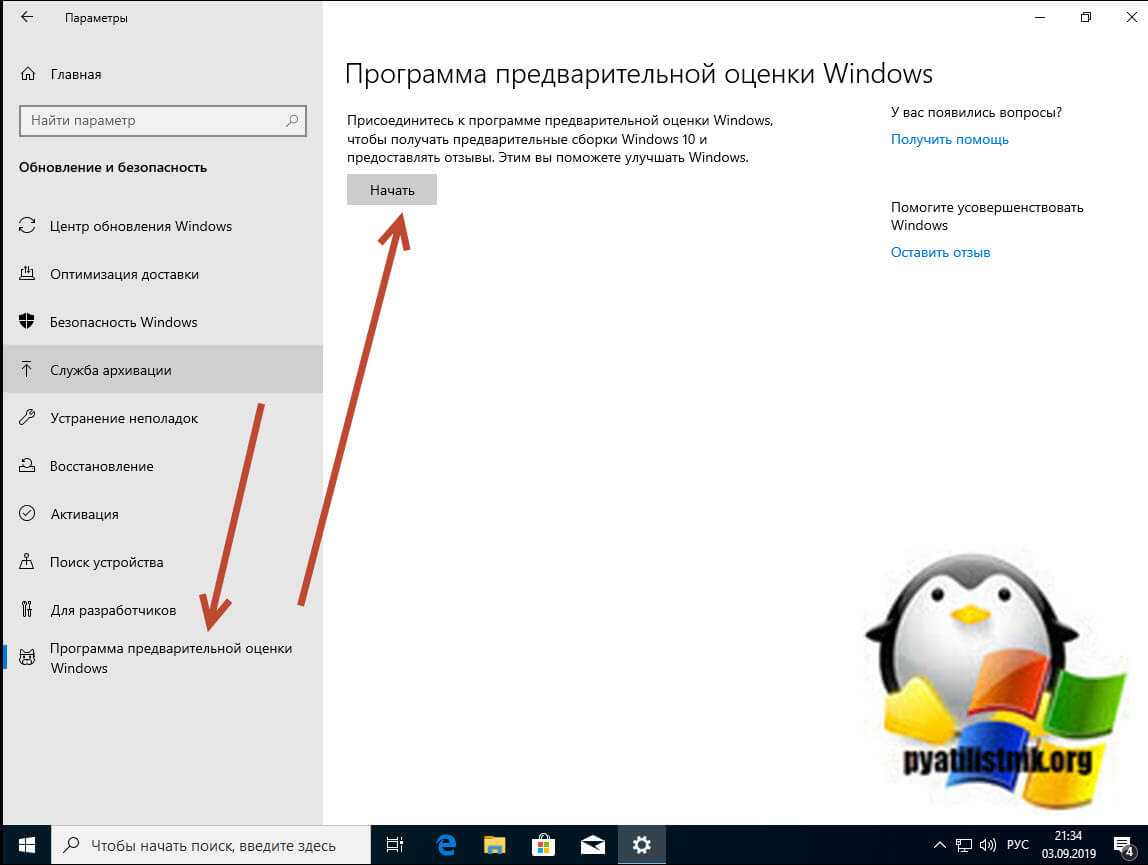 Самым последним пунктом находим раздел «Программа предварительной оценки Windows», это и есть нужный нам Windows 10 insider preview. Чтобы присоединиться к данной программе Microsoft вам необходимо просто нажать кнопку «Начать».