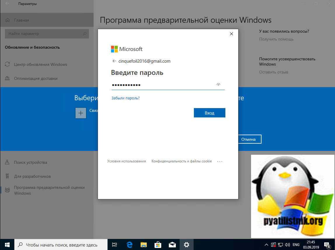 Ставим галку для принятия лицензионного соглашения на установку Windows 10 insider preview.