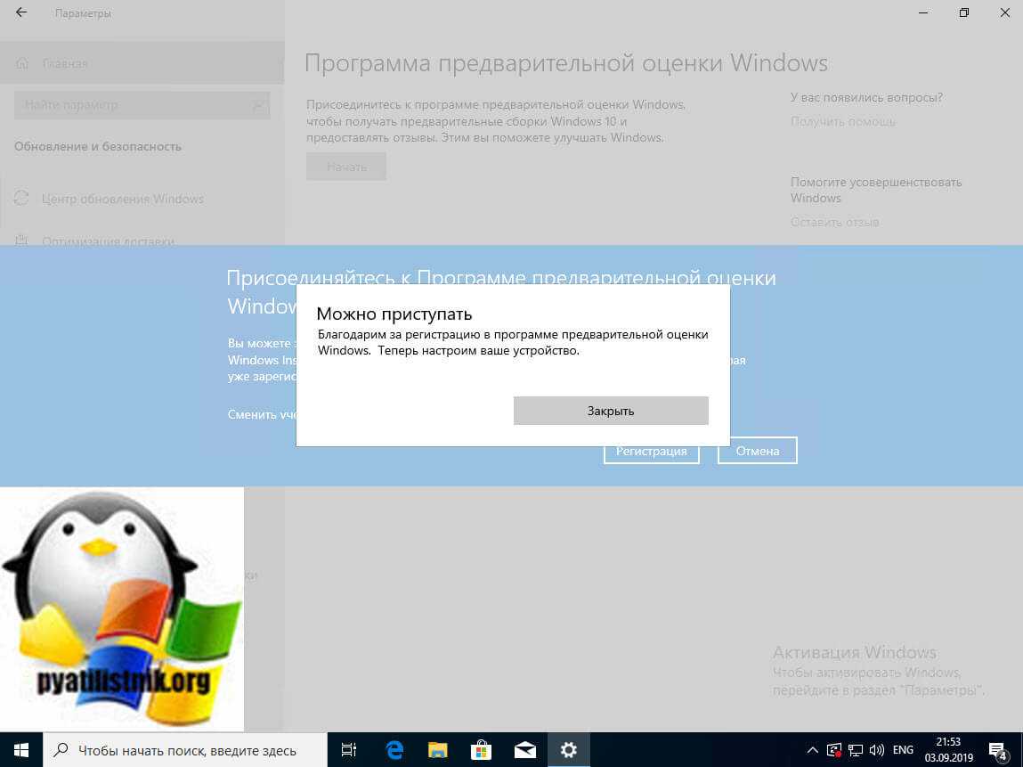 Вам сообщат, что теперь вы можете приступать к установке Windows 10 insider preview.