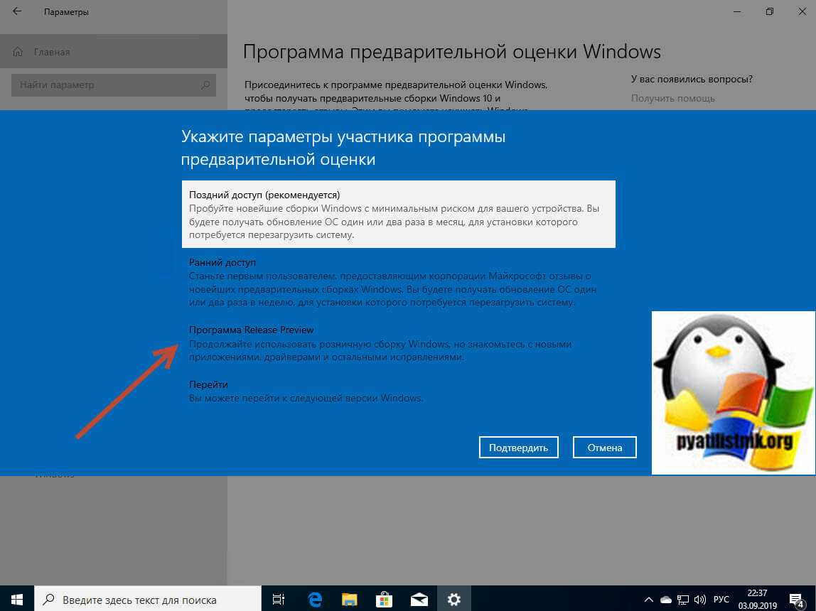 - Программа Release Preview — Продолжайте использовать розничную сборку Windows, но знакомьтесь с новыми приложениями, драйверами и остальными исправлениями.