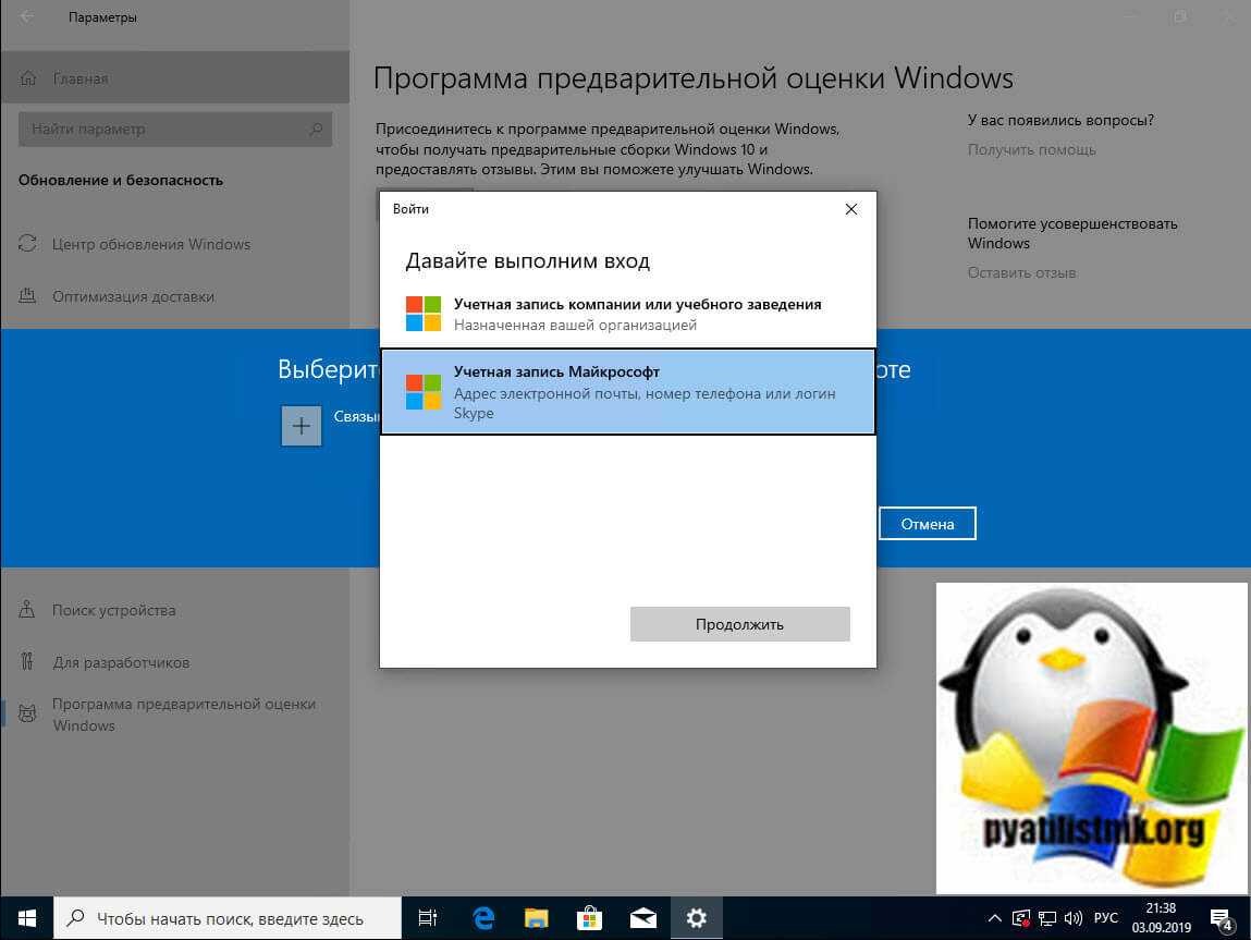 - Поздний доступ (Рекомендуется) — Пробуйте новейшие сборки Windows с минимальным риском для вашего устройства. Вы будите получать обновление ОС один или два раза в месяц, для установки которого потребуется перезагрузка системы. Это такой легкий вариант, чтобы все не сломать, мне такой не подходит так как у меня тестовая машинка и я хочу получать все плюшки Windows 10 insider preview сразу.