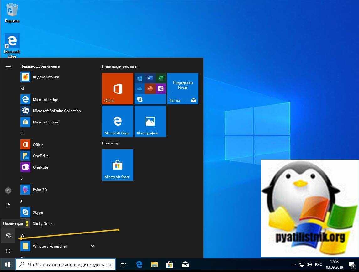 Далее у вас должна быть установлена последняя версия официального релиза Windows 10, на момент написания статьи, это версия 1903. Хочу отметить, что вы так же можете установить Windows 10 и в виртуальную машину, например ESXI 6.5 или Vmware Workstation и сделать из нее Windows 10 insider preview, чтобы например не ломать свою текущую, стабильную сборку. Открываем окно параметров Windows, через кнопку «Пуск» или же сочетанием клавиш Windows + I.