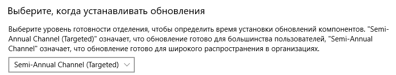 - Semi-Annual Channel (Targeted) — полугодовой цикл, получение новой версии сразу по доступности (домашние пользователи)