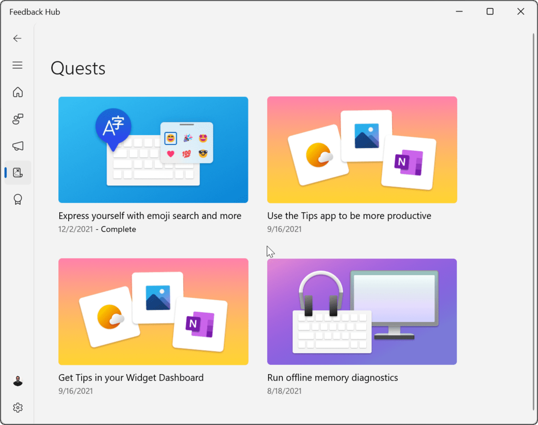 Также есть Квесты в Feedback Hub. Это позволяет вам тестировать новые функции Windows 11, предоставляя инструкции о том, как получить к ним доступ.