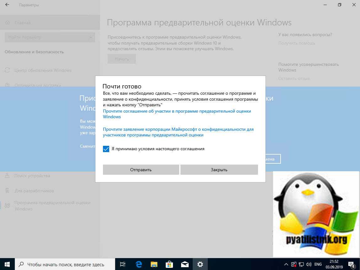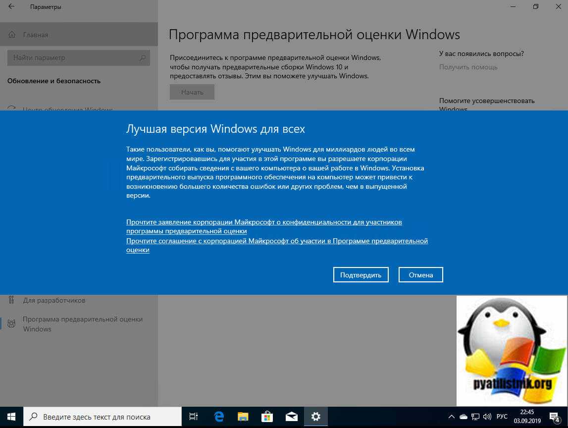 Вам покажут еще одно окно с описанием, тут вас уже попросят окончательно подтвердить регистрацию в программе предварительной оценки Windows 10.