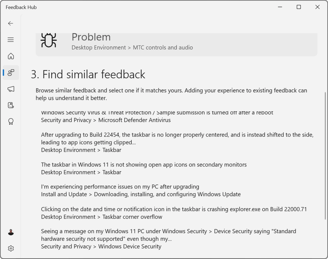 Следуйте инструкциям на экране, чтобы отправить отзыв. По завершении вы можете прочитать комментарии других участников программы предварительной оценки с аналогичными отзывами.