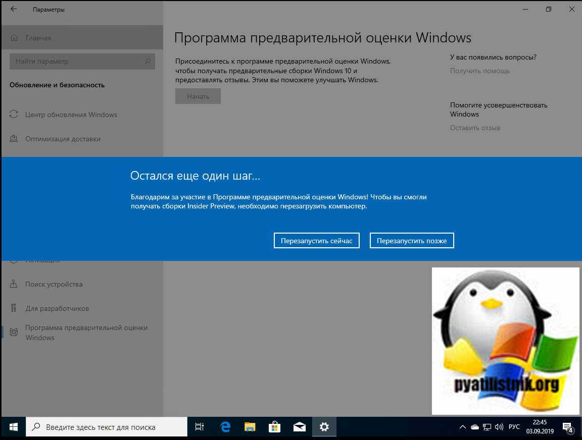 Поздравляю вы успешно подключились к программе Windows 10 insider preview. Вам предложат перезагрузить ваш компьютер, соглашаемся.
