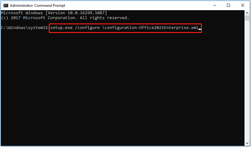 setup.exe /configure \configuration-Office2021Enterprise.xml
