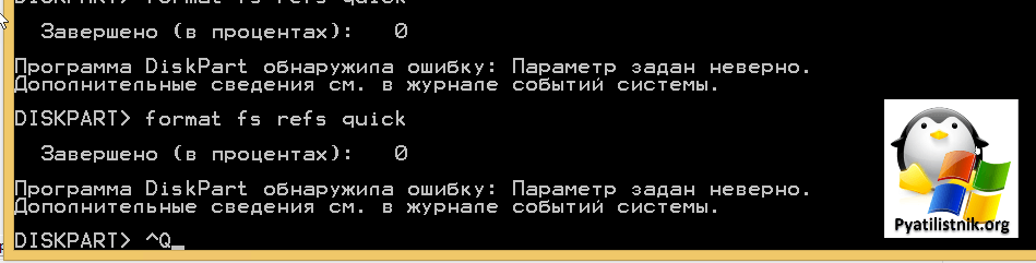 Программа DiskPart обнаружила ошибку: Параметр задан неверно. Дополнительные сведения см. в журнале событий системы.