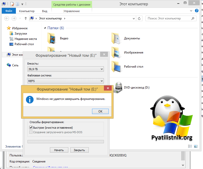 Если ОС неподдерживаемая, то даже после правки реестра будите получать ошибку «Windows не удалось завершить форматирование«.