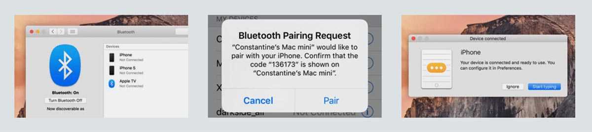◉ Произведите сопряжение необходимых устройств по Bluetooth с компьютером. На iPhone или iPad для этого перейдите в Настройки – Bluetooth и найдите свой Mac в списке доступных подключений.