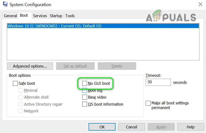 You may encounter the error at hand if any of the installed applications are interfering with the startup processes or Explorer.exe. In this context, clean booting your system and then disabling/uninstalling the conflicting applications may solve the problem. Before proceeding, make sure that No GUI is unchecked in the Boot tab of the System Configuration.