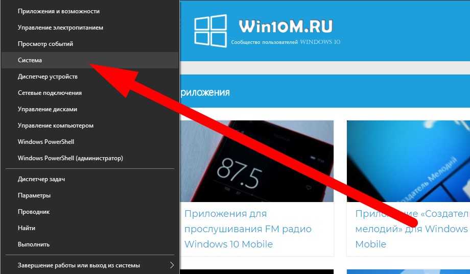 Чтобы попасть в панель настроек, необходимо зайти в меню Пуск кликом правок кнопки мыши (если оно у вас не работает, то читайте о причинах и как их исправить, на этой странице), далее находим пункт «Система», как показано ниже на скриншоте и кликаем на него левой кнопкой мыши.