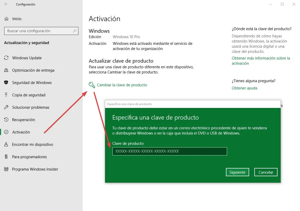 Пароль мог быть изменен или удален из нашей системы по любой причине. Поэтому первое, что мы собираемся сделать, это снова ввести его в Windows 10. Самый простой способ сделать это — открыть меню «Настройки» в Windows 10 и перейти в «меню». Обновление и безопасность> Активация «Выбрать» Изменить пароль продукта