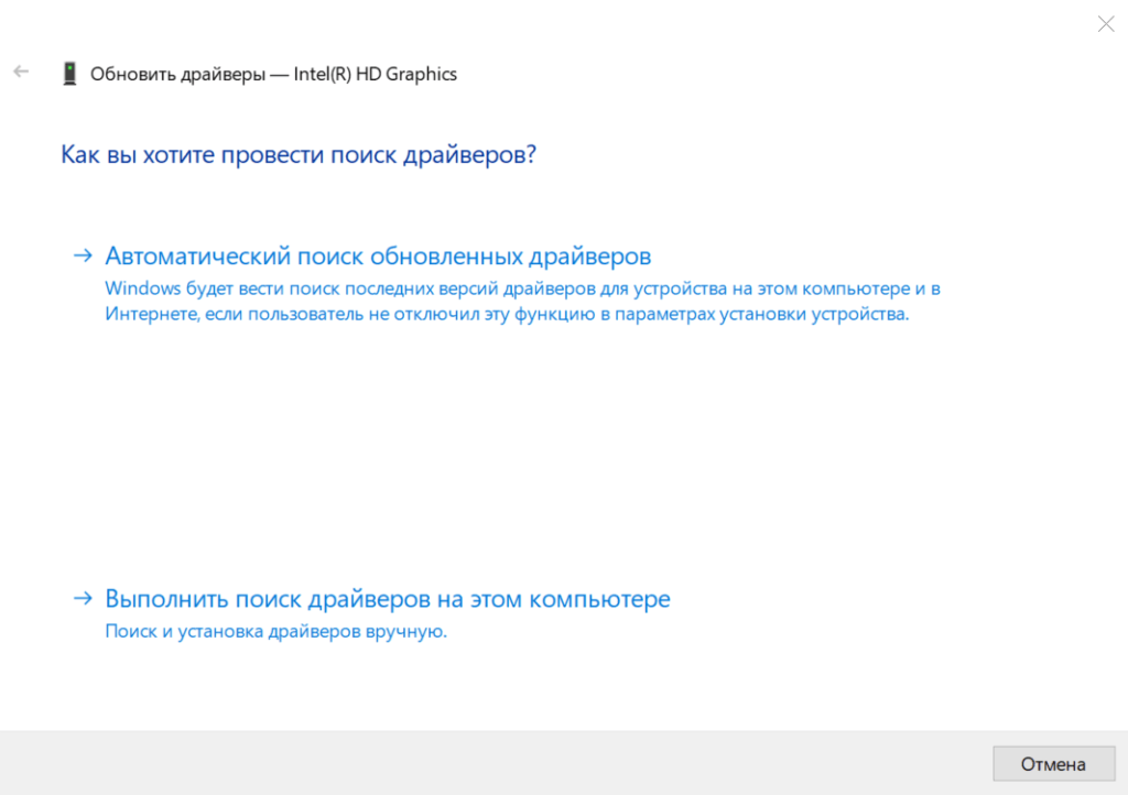 - Выберите «Автоматический поиск обновленного программного обеспечения драйвера». Windows 10 выполнит поиск и установку нового драйвера для вашей видеокарты.