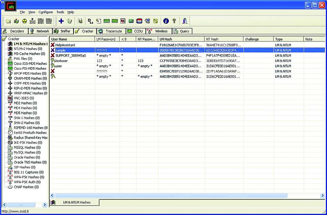 Cain&Abel — еще одна замечательная тулза для брутфорса NTML хэшей(кроме этого поддерживает взлом хэшей большого количества других алгоритмов)