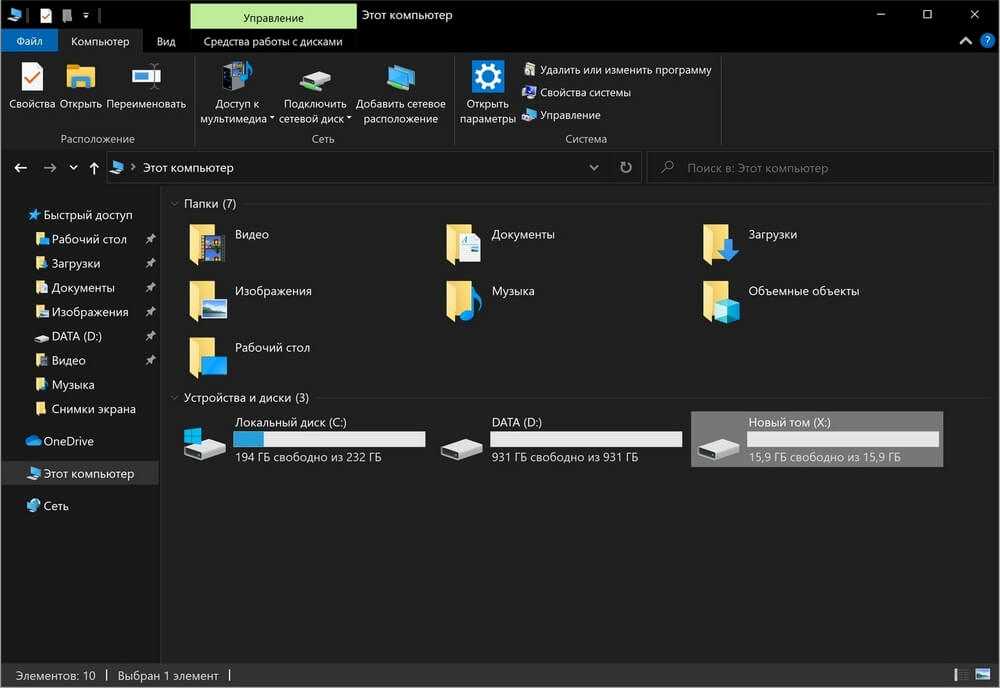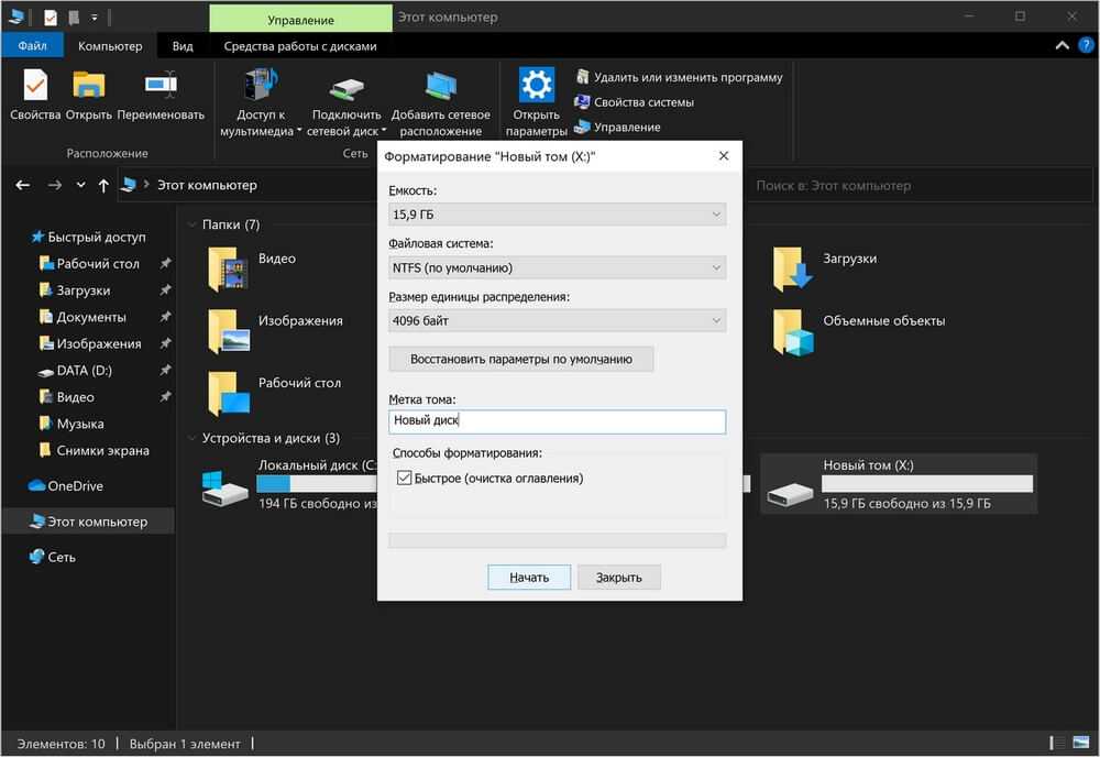 Чтобы отформатировать диск при помощи встроенной графической оболочки, запустите «Проводник» Windows и выберите в колонке слева пункт «Этот компьютер» («Компьютер» в более ранних версиях ОС).