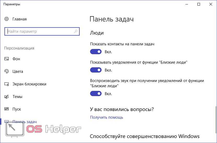 По умолчанию данная функция включена и отображается на панели задач. Но если это не так, или вы хотите, скрыть панель Люди с панели задач, вы можете сделать это в приложении Параметры.