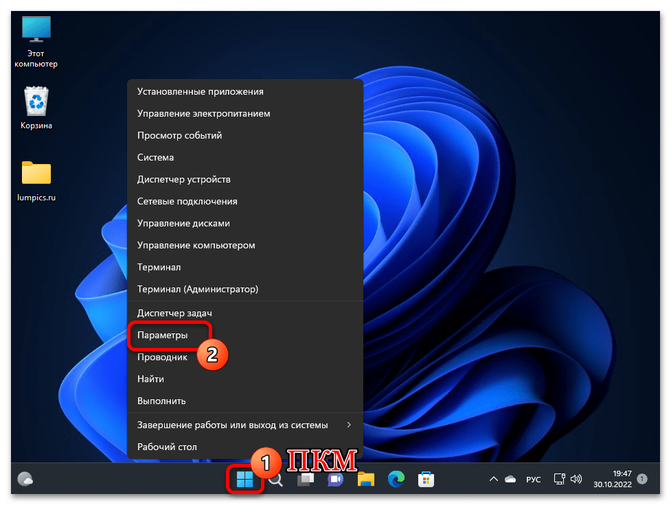 - Нажимаем на клавиатуре «Win»+«I» или открываем «Параметры» операционки любым другим способом (из Главного меню Win 11, появляющегося после щелчка правой кнопкой мышки по кнопке «Пуск» перечня действий и др.).