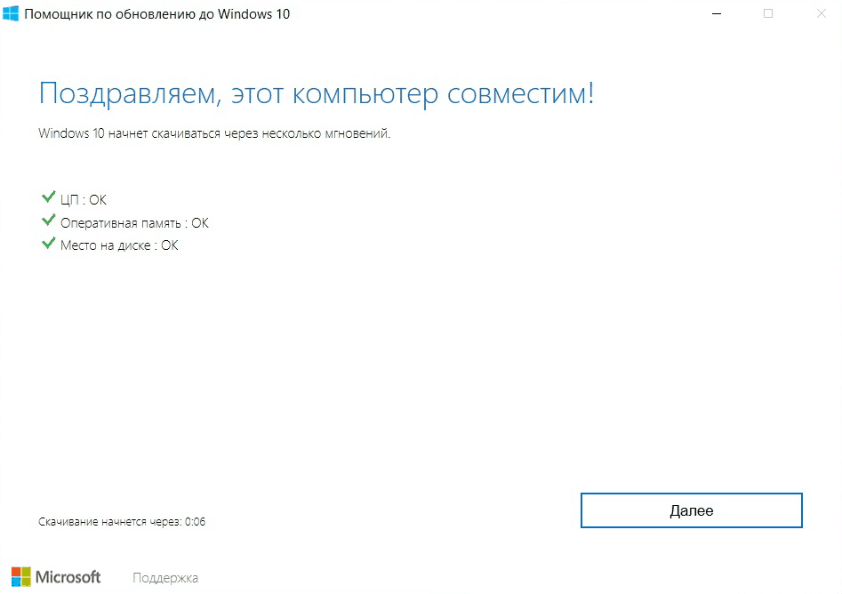 Помощник по установке проверит возможность апгрейда до Windows 10 на данный компьютер.