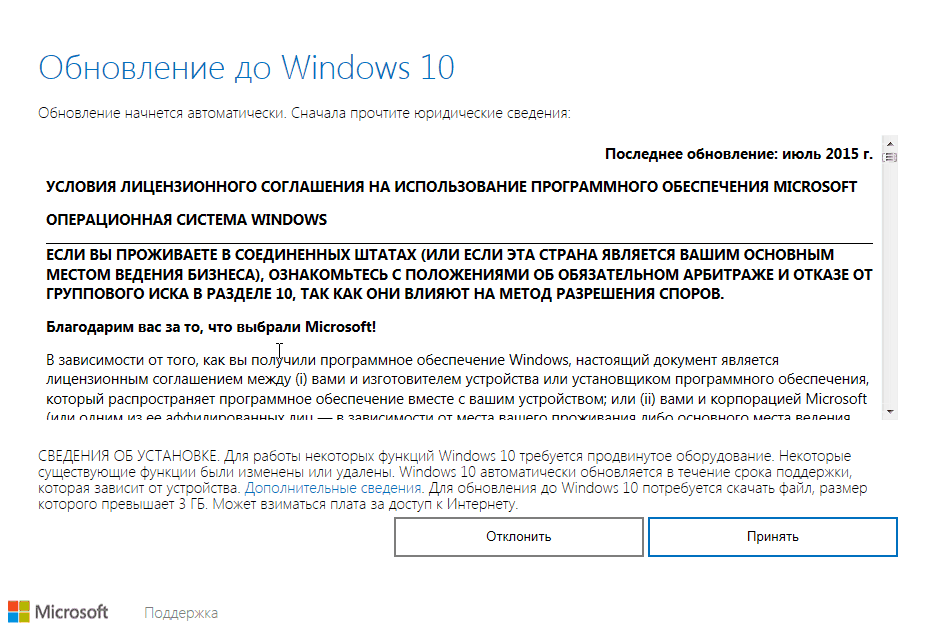 И, если все пункты прошли положительную проверку, после нажатия кнопки ОК запустится процесс обновления до Windows 10. После завершения обновления подхватывается ключ прошлой версии, и на выходе пользователь может использовать активированную систему.