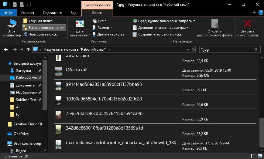 Для поиска утерянных фотографий на компьютере также можно воспользоваться функционалом встроенного в проводник поиска.