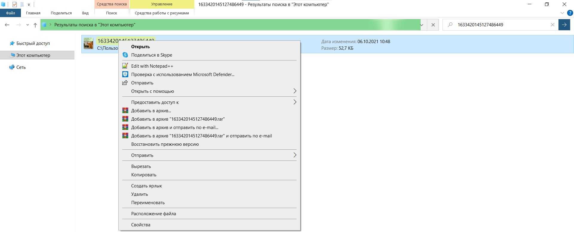 Поиск файлов и папок в Windows 10