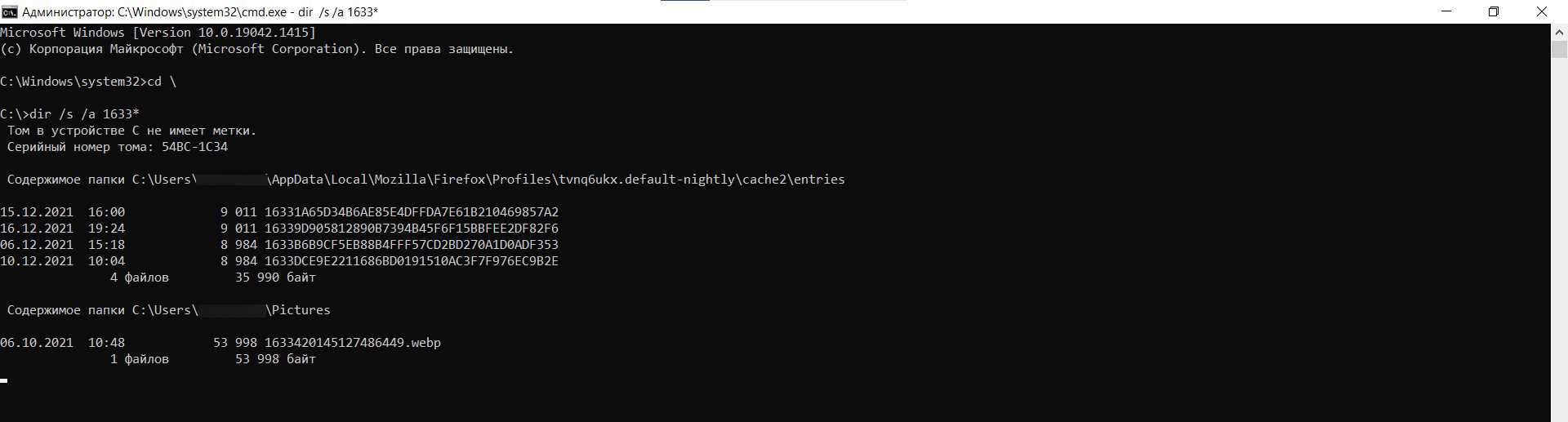 - Теперь добавьте команду dir /s /a file, где вместо «file» впишите полное название. Здесь «dir» означает вывод списка файлов в текущем каталоге, «/s» – проверку всех подкаталогов, «/a» – показ всех файлов, включая скрытые и системные. Нажмите Enter.