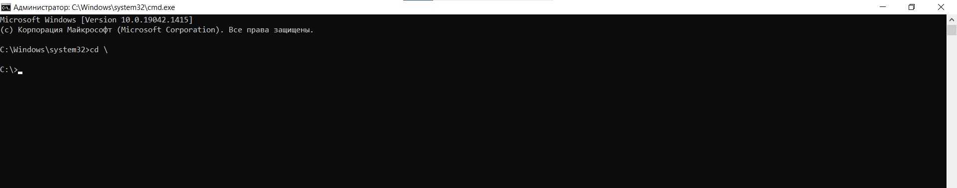 - Вставьте cd \ и кликните по Enter. Активация этой команды необходима, чтобы текущий каталог стал корнем диска.