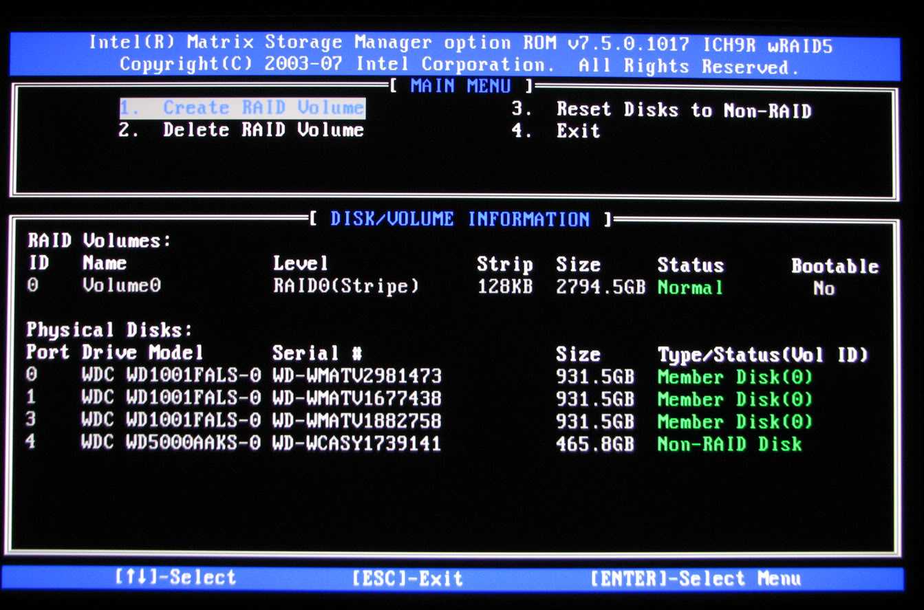 Таким образом, получается, что Raid 0 теперь находится в рабочем состоянии. Для выхода нужно нажать на Esc.