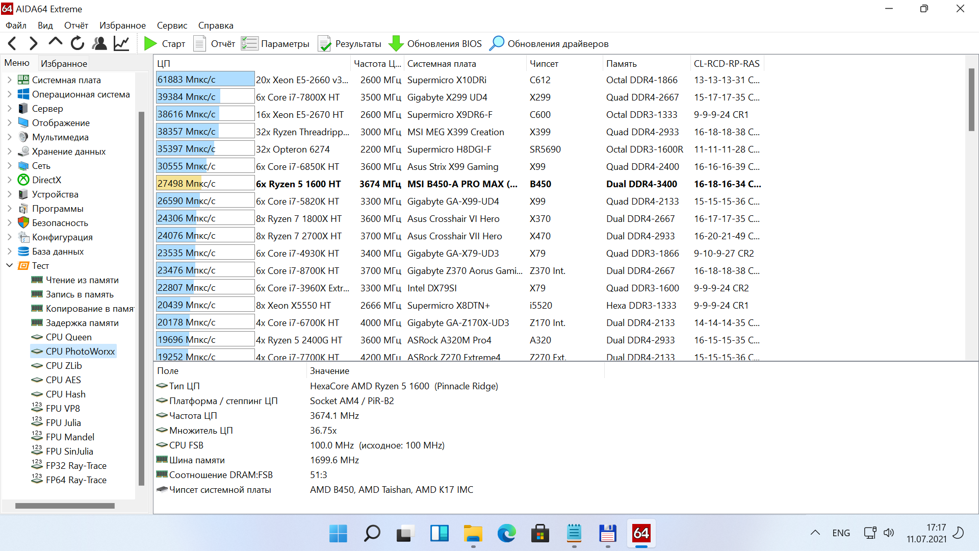 Характеристики тестируемого ПК таковы: Ryzen 5 1600 AF, материнская плата MSI B450-A PRO MAX, 2х16 ГБ ОЗУ CRUCIAL Ballistix Sport LT AES с разгоном до 3400 МГц, SSD-накопитель Samsung 860 EVO SATA.