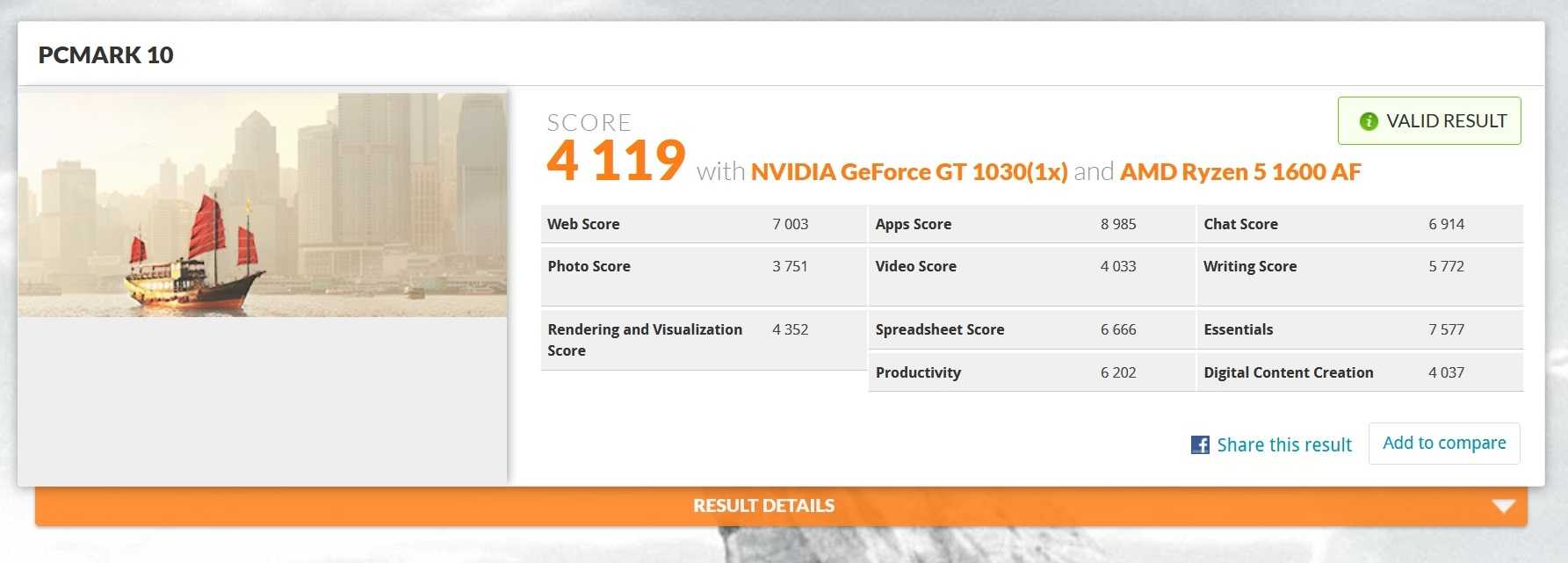 В Windows 10 мой ПК набрал 4119 очков в PCMark 10.