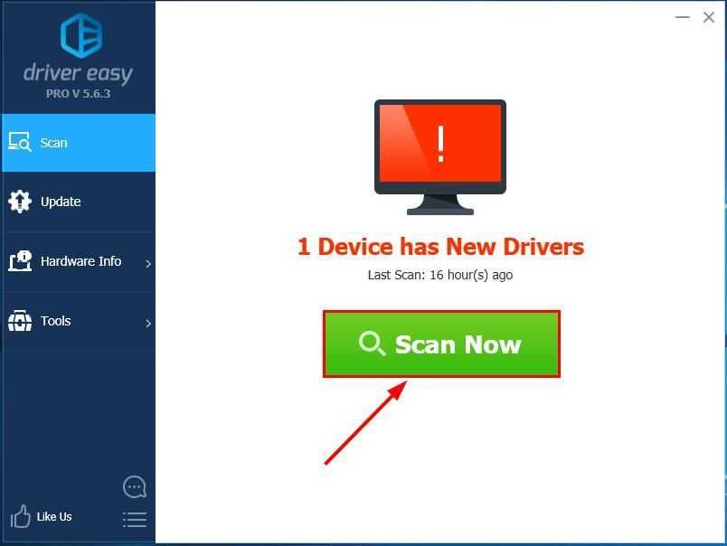 2) Запустите Driver Easy и нажмите Сканировать сейчас кнопка. Driver Easy просканирует ваш компьютер и обнаружит проблемы с драйверами.