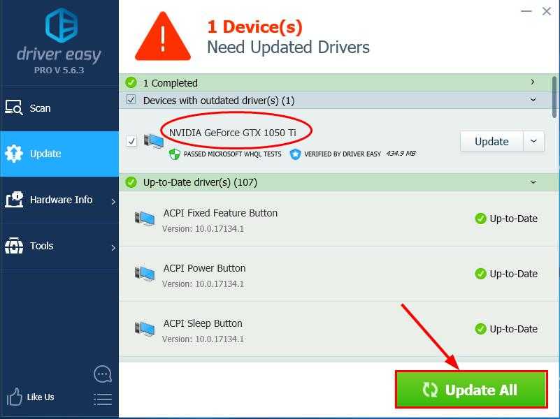 3) Нажмите Обновить все для автоматической загрузки и установки правильной версии ВСЕ драйверы, которые отсутствуют или устарели в вашей системе (для этого требуется Pro версия — вам будет предложено выполнить обновление, когда вы нажмете «Обновить все»).