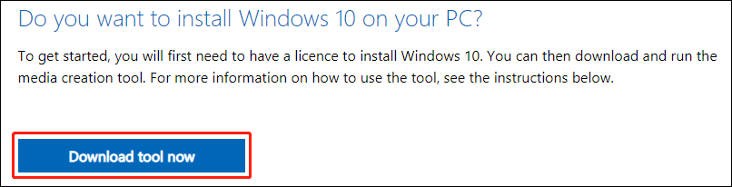 Under the “Create Windows 10 installation media” section, click the Download tool now button.