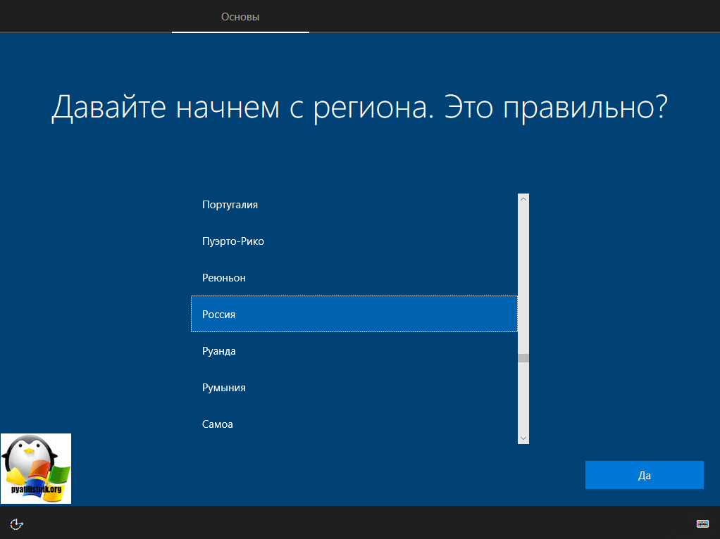 После всех перезагрузок, вы увидите экран с выбором региона в котором вы живете.