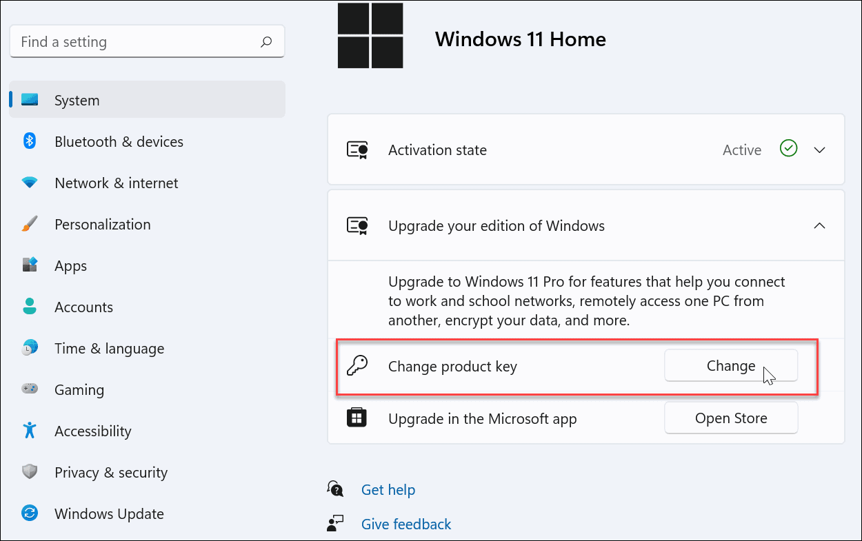 Вы можете обновить версию Windows 11 Home до Pro, просто изменив ключ продукта в меню «Настройки» > «Активация». Вот как вы можете это сделать —