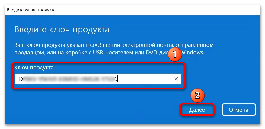в Введите ключ продукта введите цифровой ключ продукта, который у вас есть, затем нажмите Следующий.