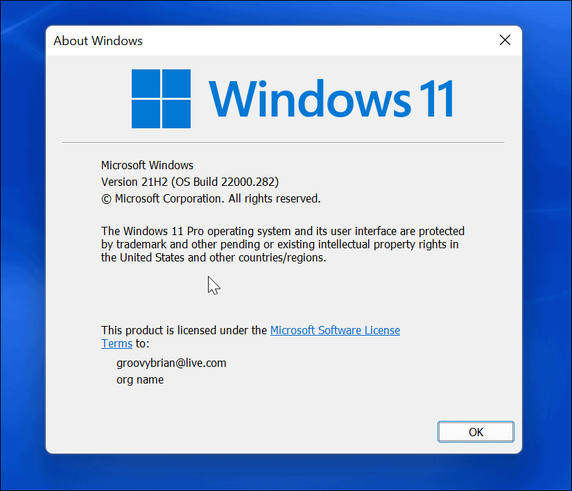 в О Windows вы должны увидеть номер версии и версию Windows 11, которую вы используете.